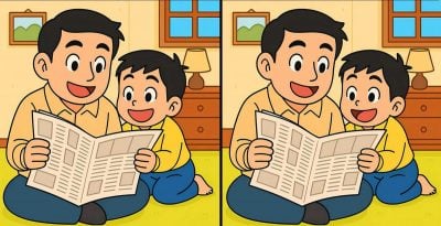 Er du klar til den næste udfordring? Se på de to billeder af en far og en søn, der læser avis. Ved første øjekast ser billederne måske ens ud, men der er 3 forskelle gemt på dem, og din opgave er at finde dem så hurtigt som muligt. Vil du være i stand til at finde dem alle på bare 45 sekunder? Prøv at løse dette puslespil og se, hvor skarp du er!