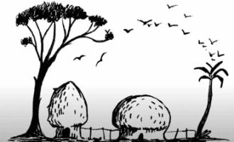 Løven kan ses på træet i højre side af billedet som en figur dannet af blade.