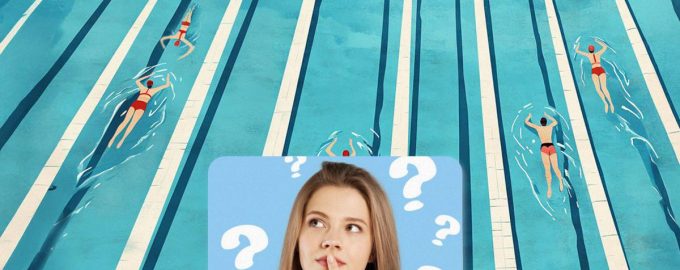 Prøv at sætte dig i svømmernes sted for at finde ud af, hvad der er galt. Identificer, hvad der er galt på billedet med swimmingpoolen / collage Moje,...